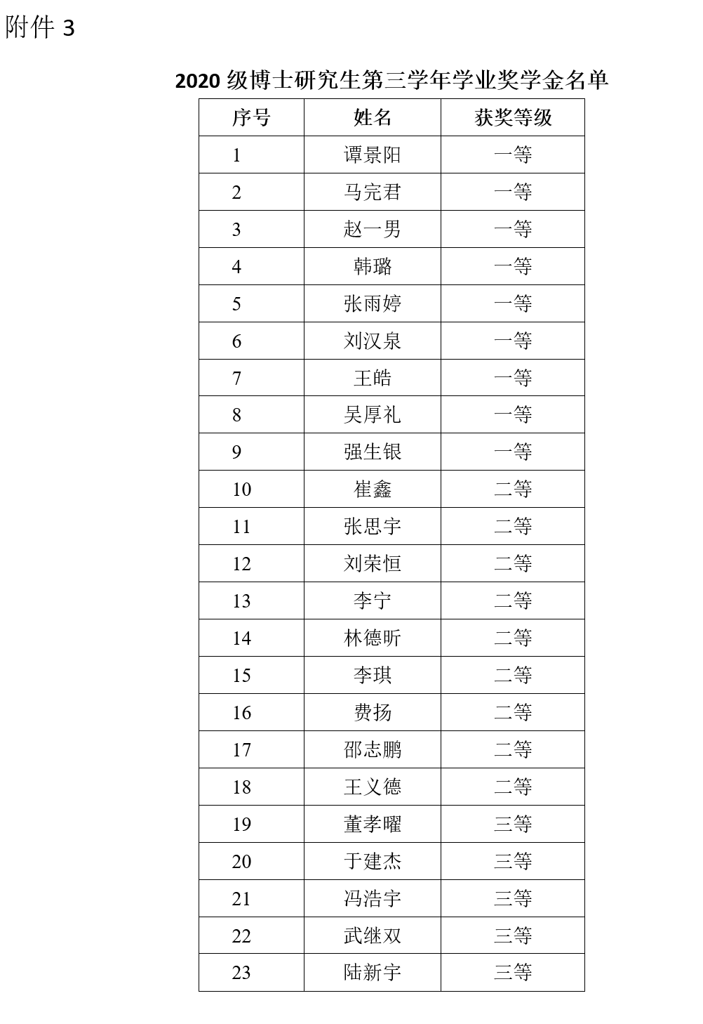 3. 2020級博士研究生第三學年學業(yè)獎學金名單