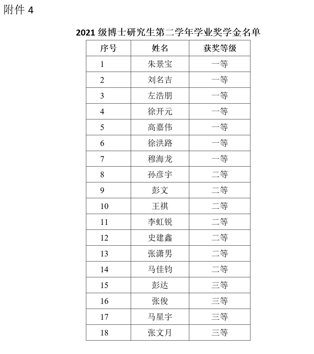 4. 2021級博士研究生第二學年學業(yè)獎學金名單