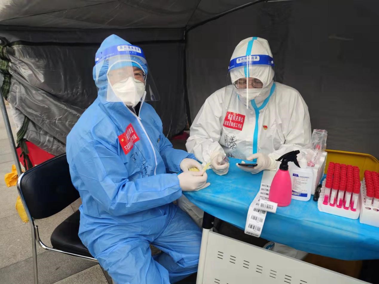 早6:00開始,引導居民測溫、掃碼、核酸采樣、離開現場、場地消毒、維持秩序、幫助老弱病殘居民……直到20:00,整理完現場帳篷、設備、設施、防疫物資等,才算一整天的核酸檢測工作結束。即使是這樣的工作強度,大家都沒有任何怨言,始終保持緊張的工作狀態,認真地堅守崗位。