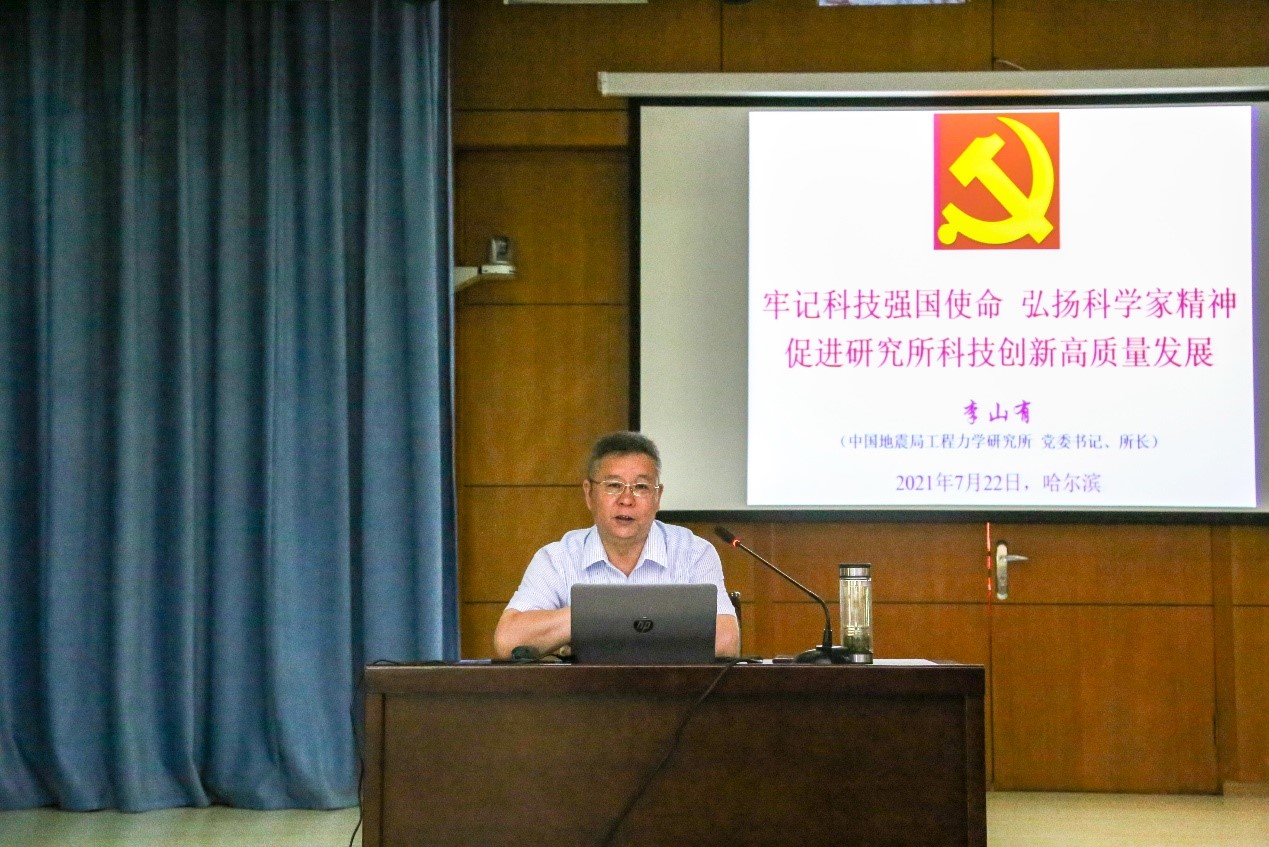 發布時間: 2021-07-27 點擊數量:47217月22日,工力所舉行黨史學習教育專題黨課報告會。工力所黨委書記、所長李山有同志以“牢記科技強國使命 弘揚科學家精神 促進研究所科技創新高質量發展”為主題向全所干部職工和學生黨員講授黨史學習教育專題黨課。