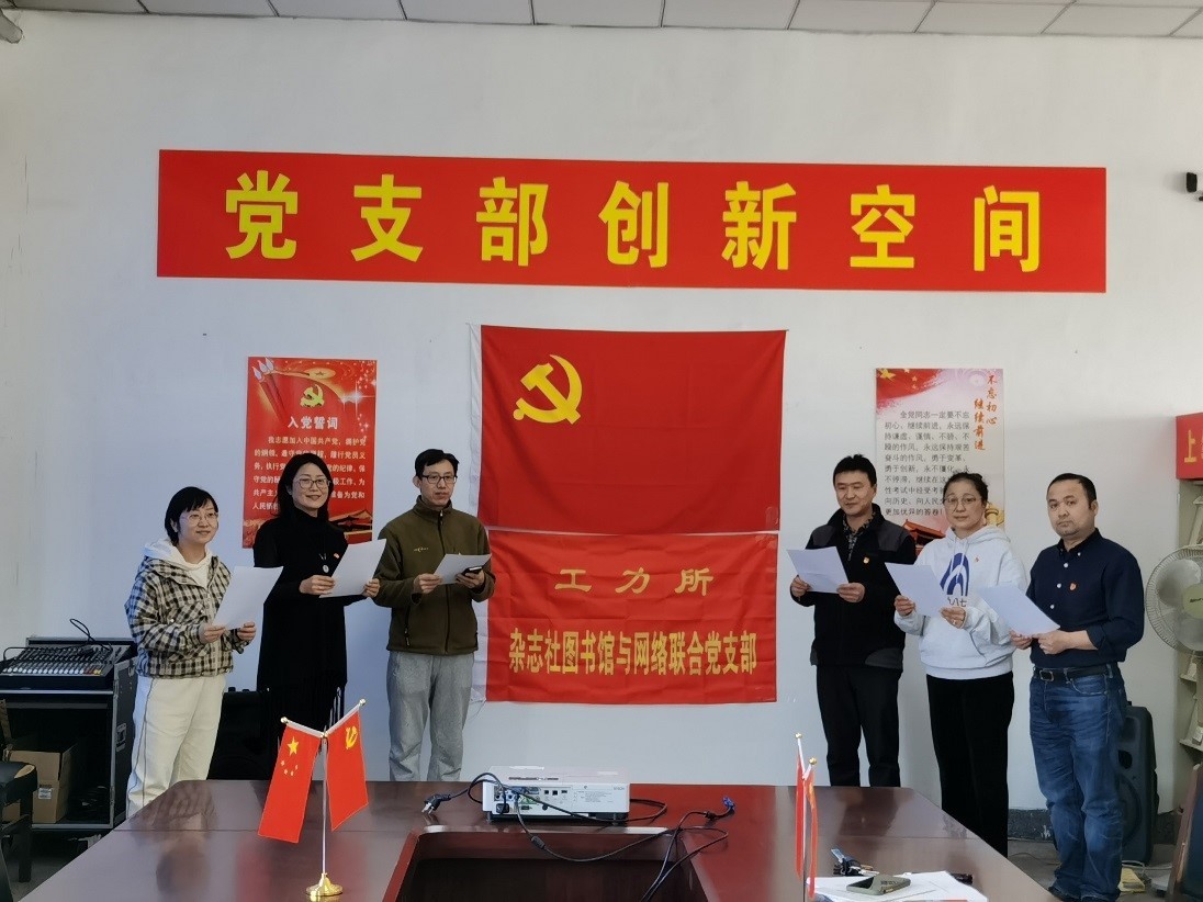 2021年4月9日,雜志社圖書(shū)館黨支部全體黨員懷著無(wú)比崇敬的心情在黨支部創(chuàng)新空間舉行以“重溫入黨誓詞、革命英烈詩(shī)詞”為主題的詩(shī)歌朗讀會(huì)。首先,黨支部書(shū)記帶領(lǐng)大家重溫入黨誓詞。隨后,黨員同志們飽含深情地朗誦了《滿江紅》《西江月》《真理詩(shī)》《我的自白書(shū)》《革命烈士詩(shī)歌》《把牢底座穿》,他們或激昂慷慨,或輕柔低吟,懷著滿腔愛(ài)國(guó)愛(ài)黨熱忱朗誦了一首首經(jīng)典革命詩(shī)歌。整個(gè)朗誦會(huì)肅然有序,激情飛揚(yáng)。