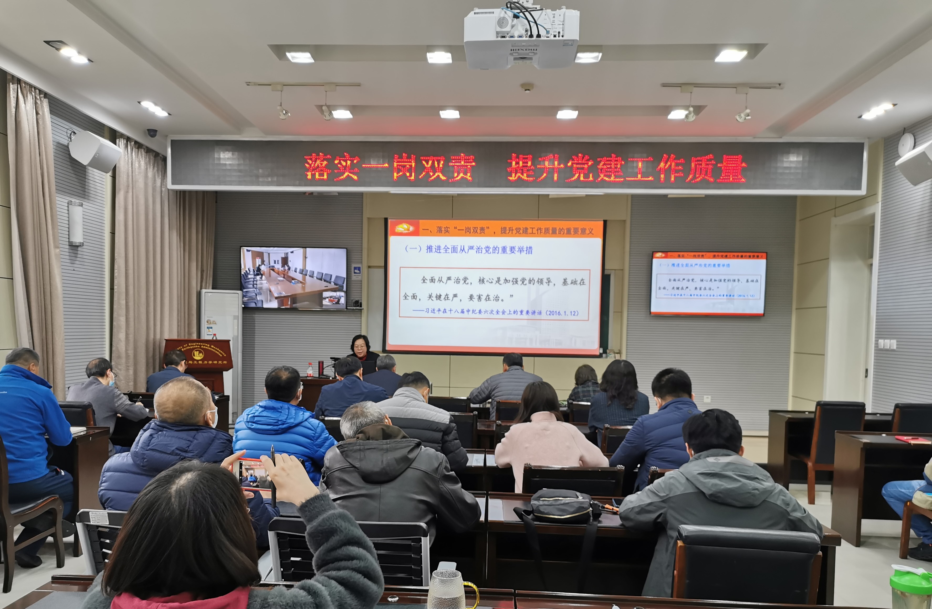 孫教授詳細闡述了 “落實一崗雙責,提升黨建工作質量”的重要意義、基本內涵和主要對策,強調落實“一崗雙責”是全面從嚴治黨的重要舉措,要樹立全新黨建理念,建立“大黨建”工作格局,擔起政治責任,理解把握“六個關系”,靈活掌握黨建與業務工作融合的方法。