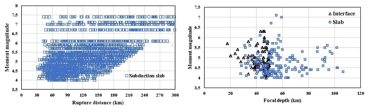 圖1 日本海溝地區(qū)海域板內(nèi)地震動數(shù)據(jù)分布圖