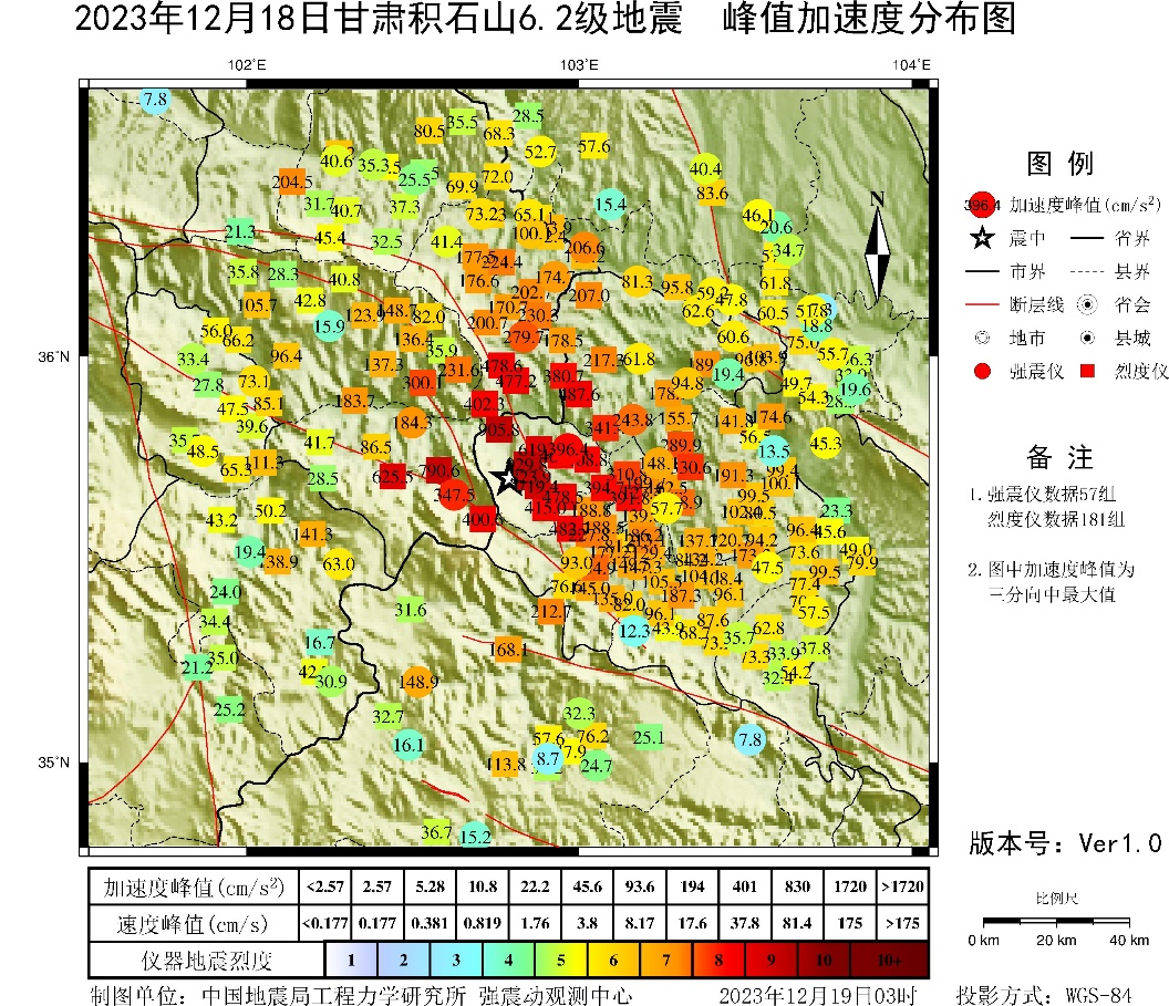 中國地震臺網正式測定:12月18日23時59分,在甘肅臨夏州積石山縣(北緯35.7度,東經102.79度)發生6.2級地震,震源深度10公里。