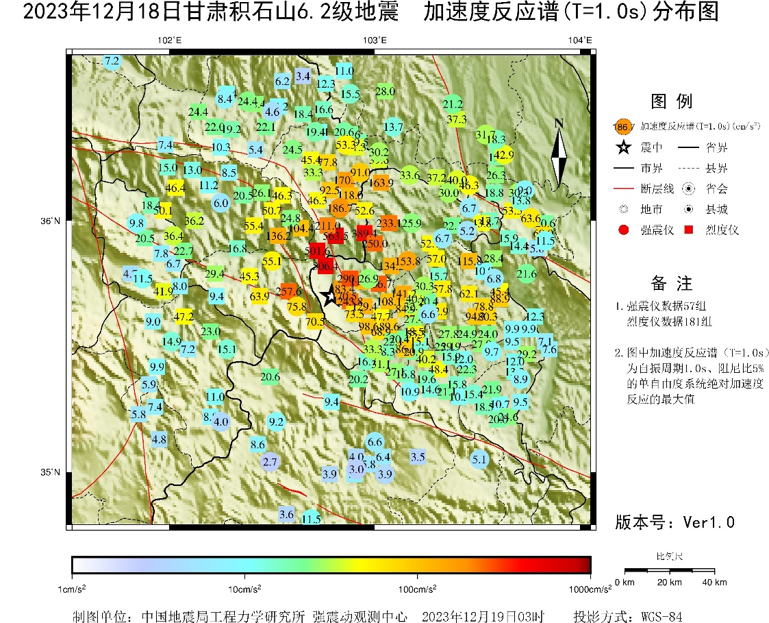 圖5 甘肅臨夏6.2級地震加速度反應譜(T=1.0s)分布圖