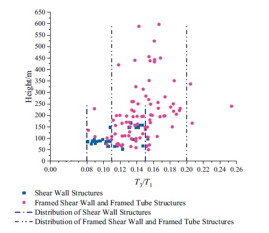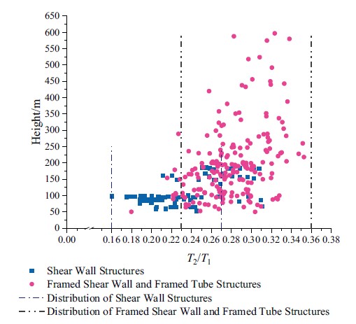 中國現行《建筑結構荷載規范》 GB50009-2012附錄F中,對高層建筑的自振周期給出了經驗公式。該公式基于1974年的《工業與民用建筑抗震設計規范(試行)》TJ 11-74和1987年的《建筑結構荷載規范》GBJ 9-87,通過大量建筑物自振周期的實測數據對其進行了修正和補充。但是,這一時期建筑樣本的高度基本都在50m以下,僅有少量建筑的高度在50-100m。當前中國修建了大量50m以上的建筑,而高層建筑的自振周期經驗公式仍沿用于87規范,設計理論相比當前工程現狀存在一定滯后。