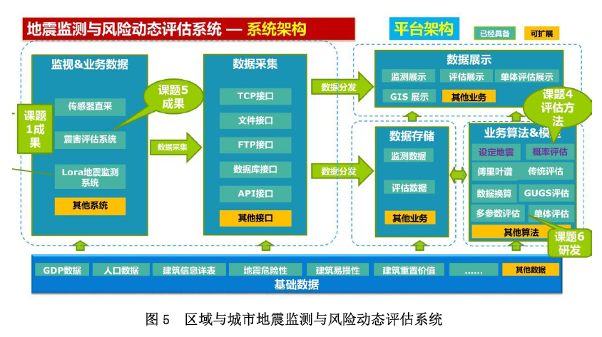 項目集成了新型傳感器、先進的組網技術、秒級計算效率的基于監測數據的單體建筑和區域建筑群地震災害的快速動態評估方法(圖4)等創新性成果,開發了“區域與城市地震監測與風險動態評估系統”(圖5),實現了基于監測數據的公里網格級別的地震災害風險快速動態評估,提升了區域與城市地震災害風險評估的時效性和精度。