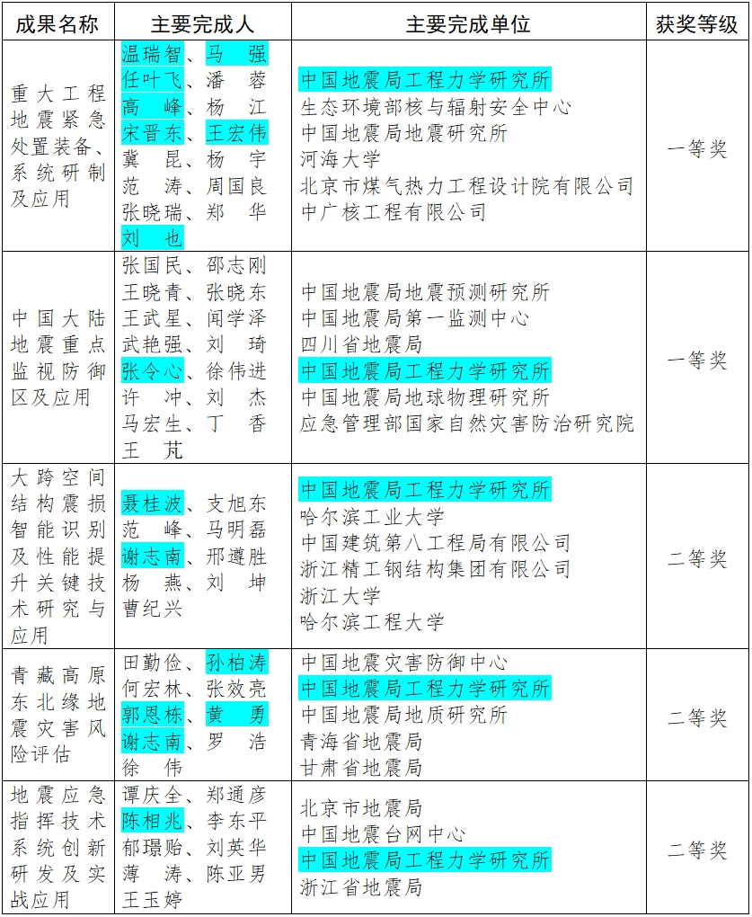 發布時間: 2025-07-17 點擊數量:8577近日,中國地震局公布了2025年度防震減災科研成果獎評選結果,我所作為牽頭單位完成的成果獲一等獎1項、二等獎1項,作為參與單位獲一等獎1項、二等獎2項。